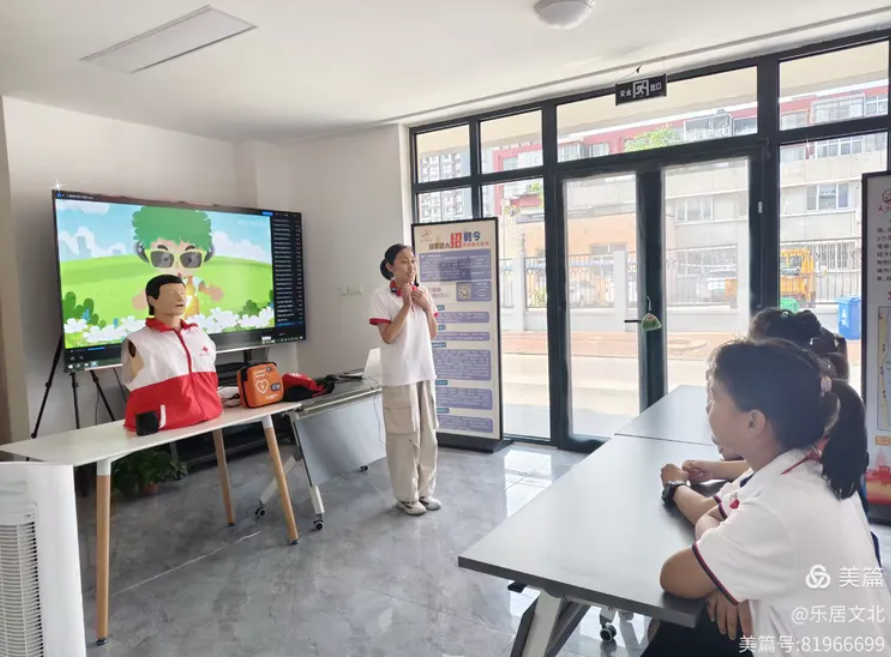 文北街道文西社区活动中心里,阳光透过玻璃窗洒在铺开的蓝色急救垫上,二十多个穿着校服的孩子围坐成一圈,眼睛亮晶晶地盯着区红十字会的李教官。今天,这里正开展一场专为未成年人设计的救护培训,空气中既带着点紧张,又藏着跃跃欲试的期待。