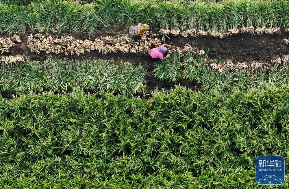 近日,素有“冀东生姜之乡”美誉的河北省唐山市丰润区新军屯镇的农民抢抓农时收获生姜,田间呈现出一派繁忙的丰收图景。据介绍,今年该镇生姜收获面积预计达4.6万亩,预计每亩生姜产量达5000公斤。