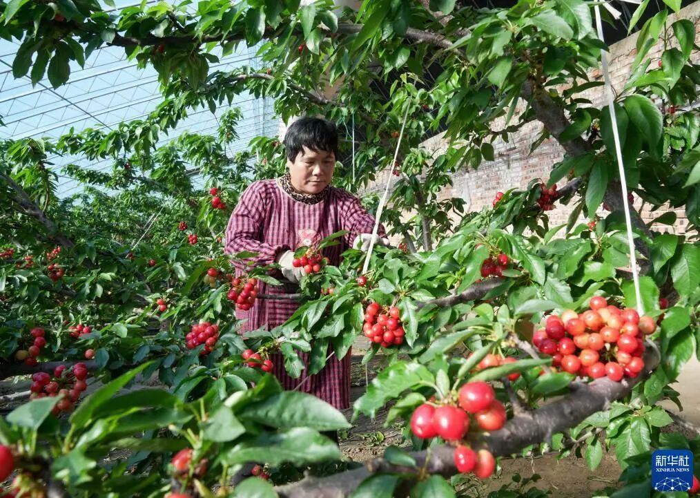 近日,河北省乐亭县丞起现代农业园区不同花期的樱桃树开花、结果,果农忙着管护、采摘,大棚内一派忙碌景象。近年来,乐亭县引导农民采取“合作社+农户”的模式种植大棚樱桃、桃、葡萄等果品,促进农民增收。