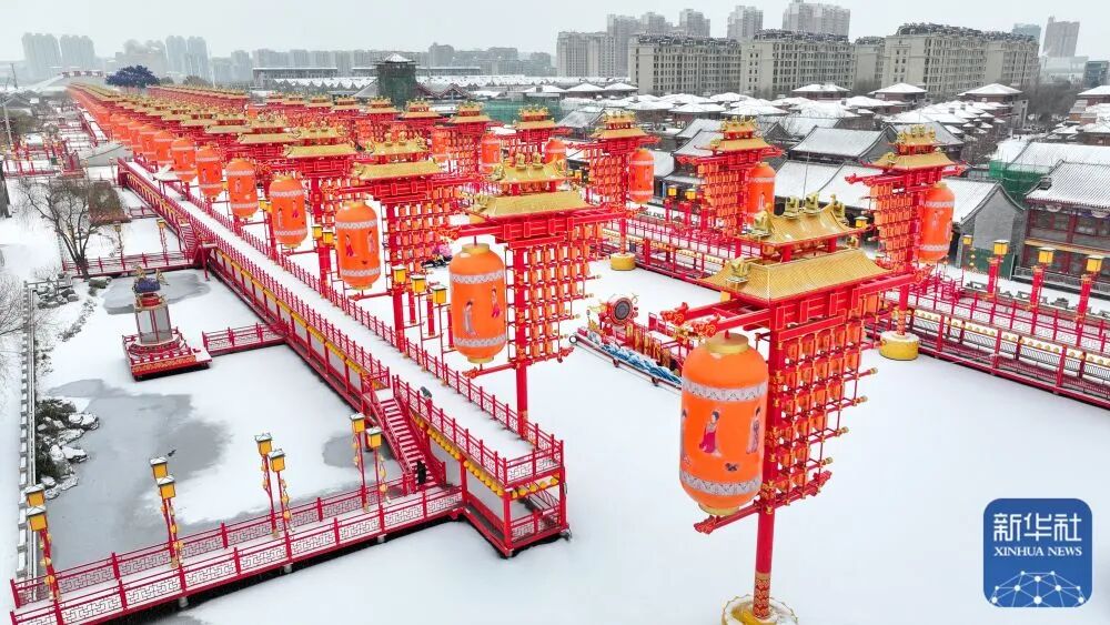 雪后的河北省唐山市丰南区河头老街景色(12月14日摄,无人机照片)。新华社发(李秀清摄)