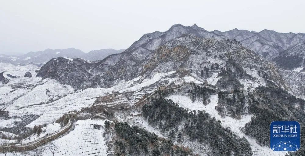 12月14日在河北省迁西县拍摄的古长城雪景(无人机照片)。新华社发(刘满仓摄)