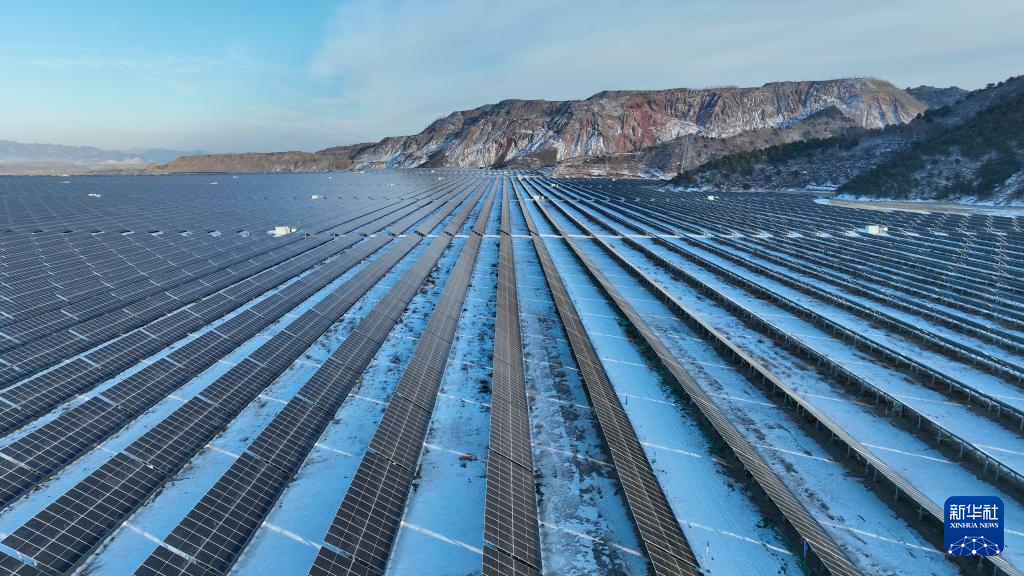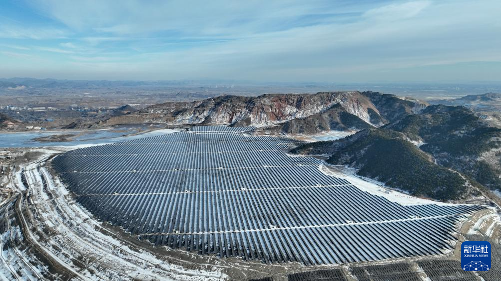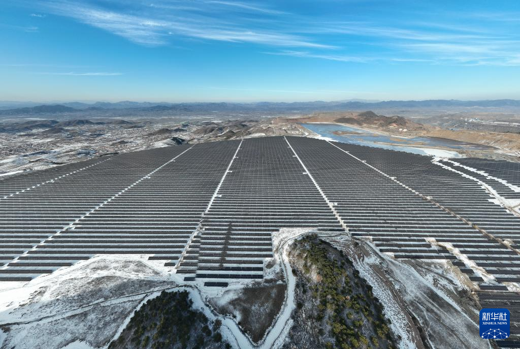 这是首钢100兆瓦光伏发电矿山治理清洁能源示范项目发电场(12月26日摄,无人机照片)。
