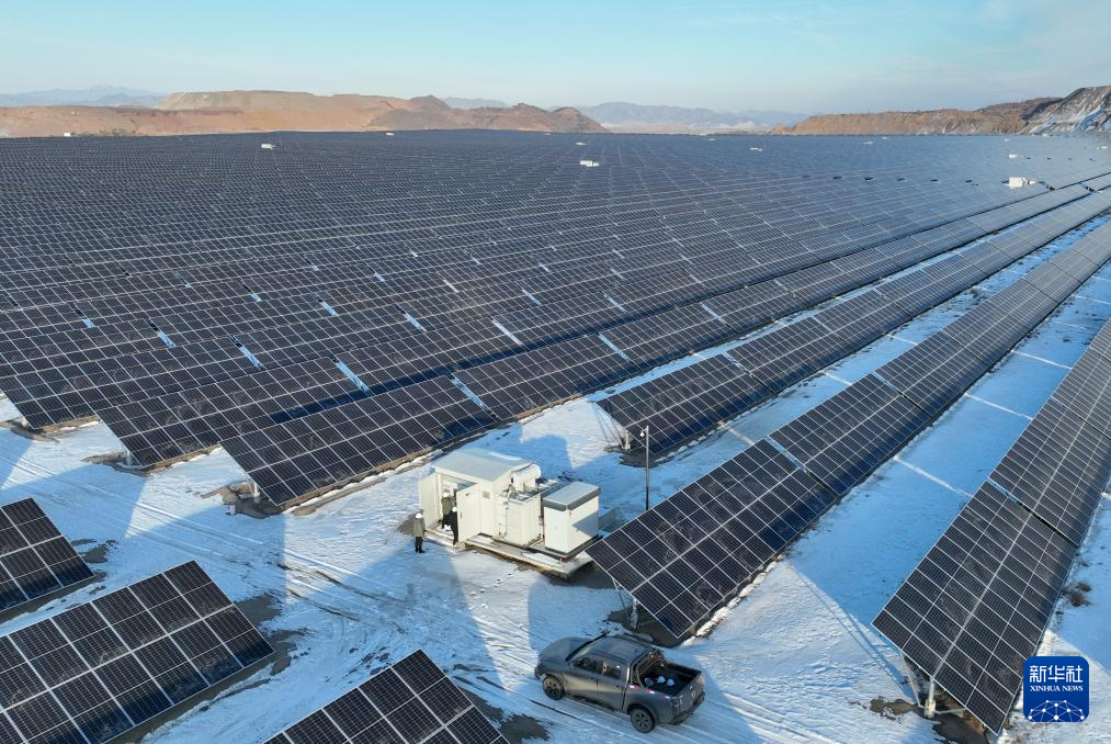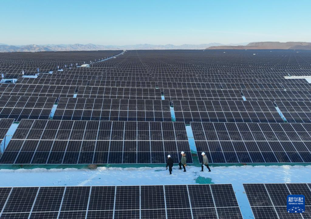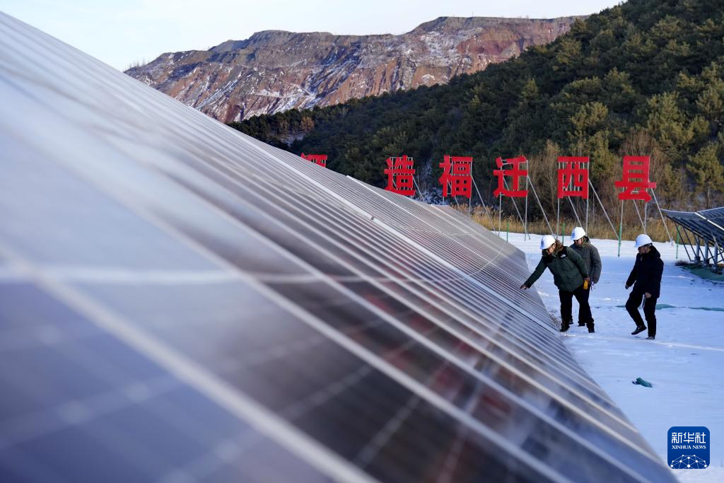 12月26日,工作人员在首钢100兆瓦光伏发电矿山治理清洁能源示范项目发电场内巡检。