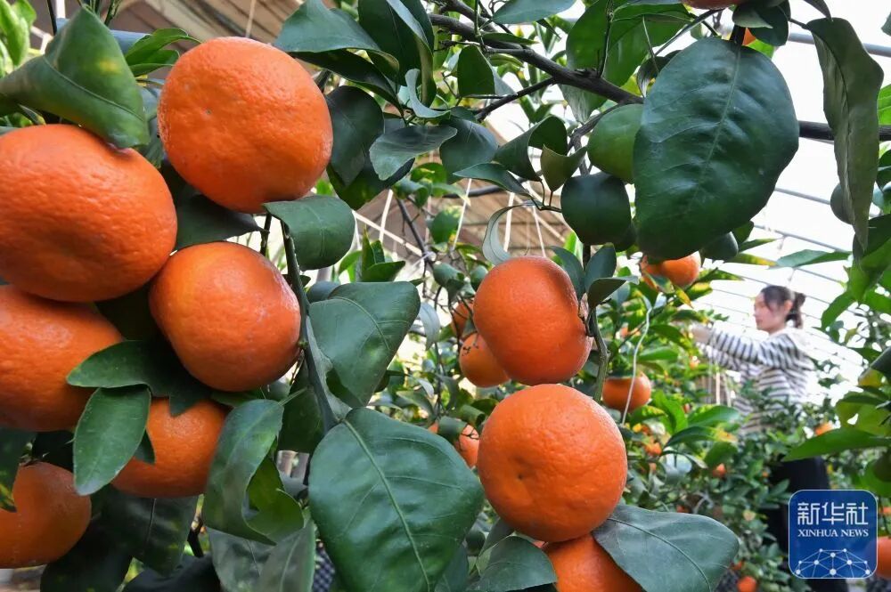 ↑12月26日,河北省滦州市九百户镇一家生态农业园的工人在采摘沃柑。