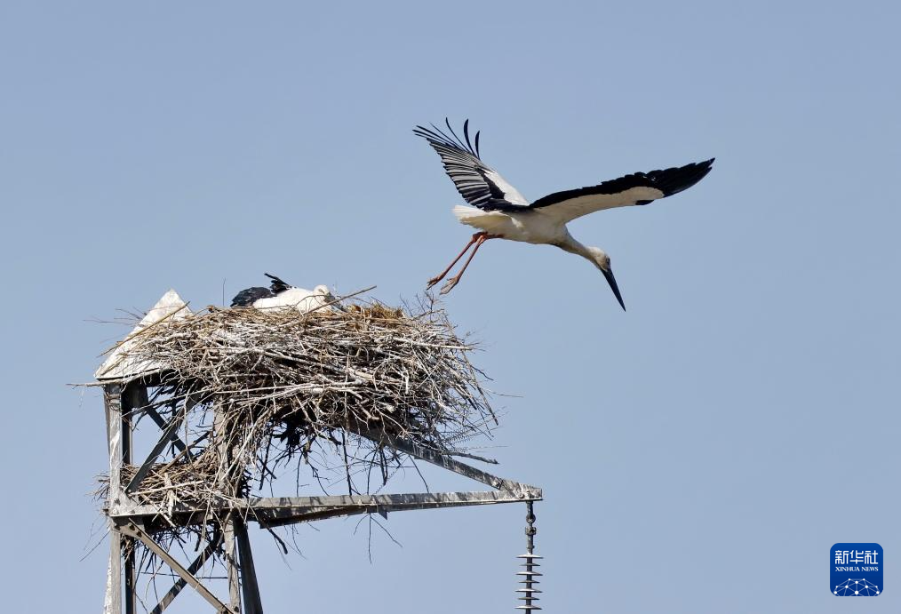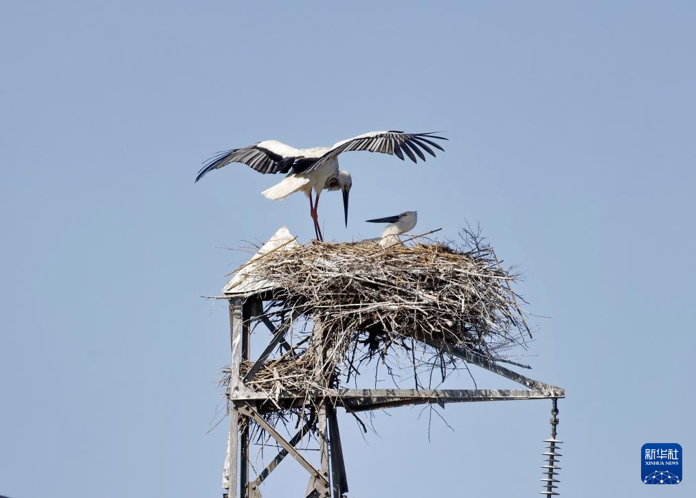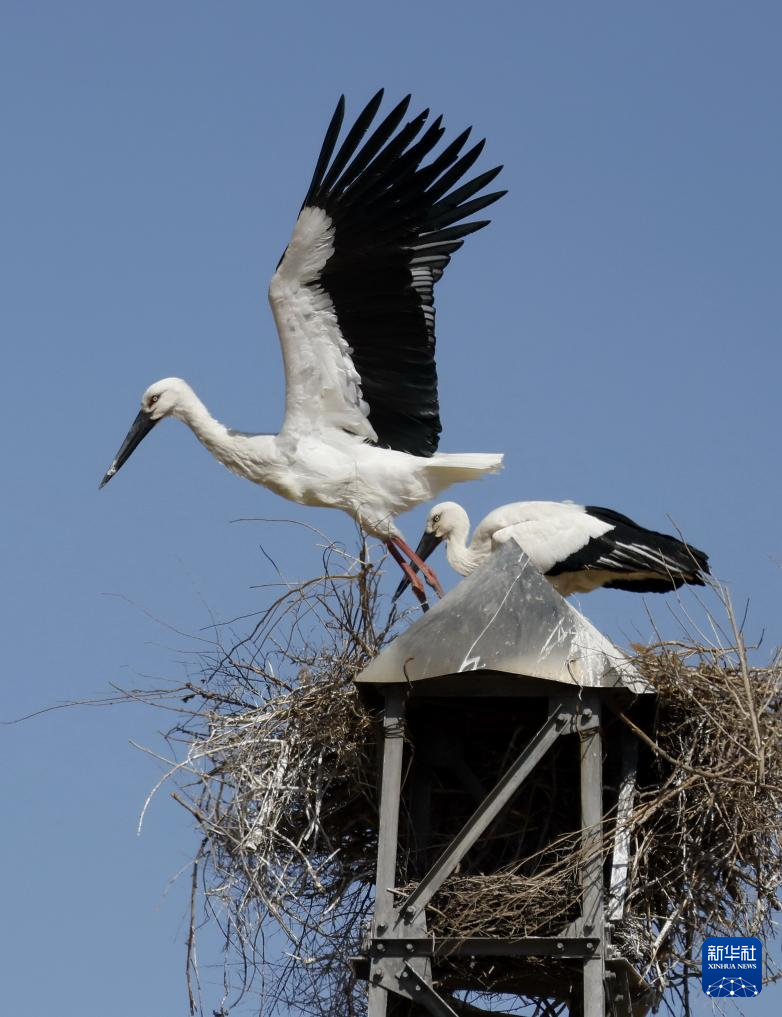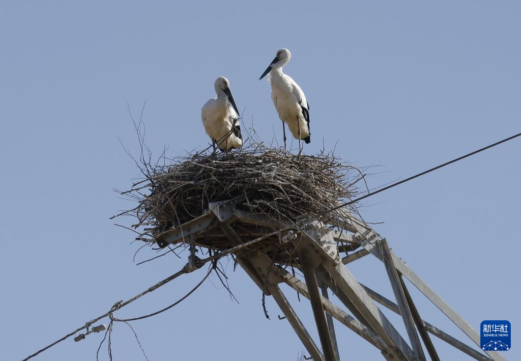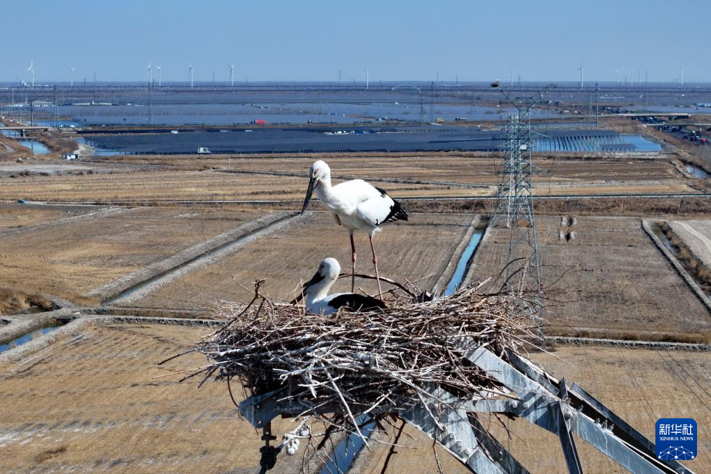 近日,栖息在河北省唐山市丰南区黑沿子镇沿海湿地的东方白鹳进入繁殖期。目前,已有多对东方白鹳在湿地铁塔上筑巢育雏。近年来,唐山市丰南区不断加大环境治理和生态功能修复力度,辖区内的沿海湿地已成为国家一级保护动物东方白鹳的重要栖息地。