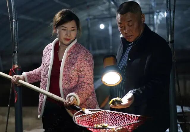 3月23日,在乐亭县姜各庄镇海参养殖基地,养殖户在养殖棚内察看海参长势。新华社记者 杨世尧 摄
