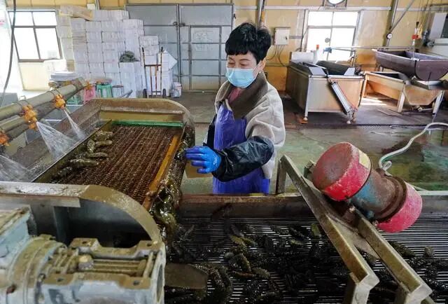 3月23日,乐亭县姜各庄镇一家海参加工企业的工人在清洗海参。新华社记者 杨世尧 摄